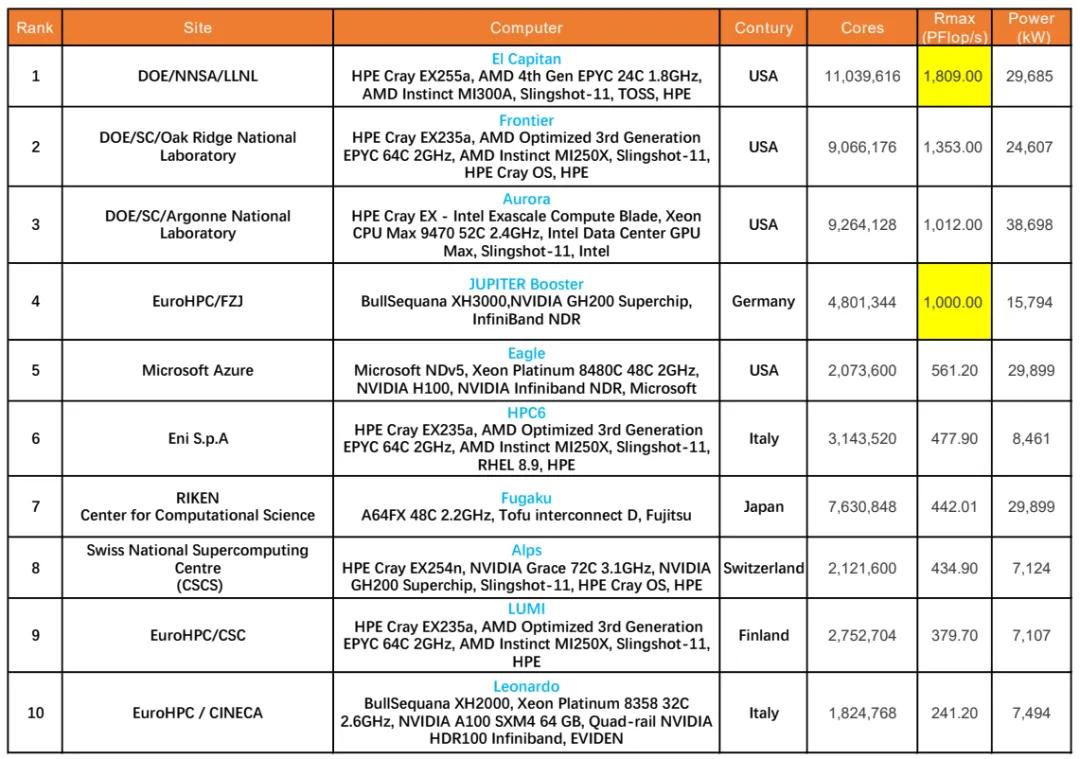 美国三台E级超算系统持续领跑