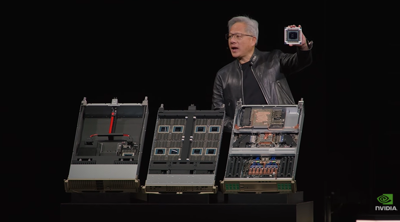 我们的使命是持续推进技术。去年我们在Hopper架构处于巅峰时,毅然决定进行重塑。我们将8路NVLink的Hopper架构提升到了全新高度,彻底重新设计了系统,实现了计算系统的解构,并创造了NVLink 72。其构建、制造和编程方式都发生了翻天覆地的变化。Grace Blackwell和NVLink 72是一次巨大的豪赌,过程极其艰辛。在此,我要感谢所有合作伙伴的辛勤付出。